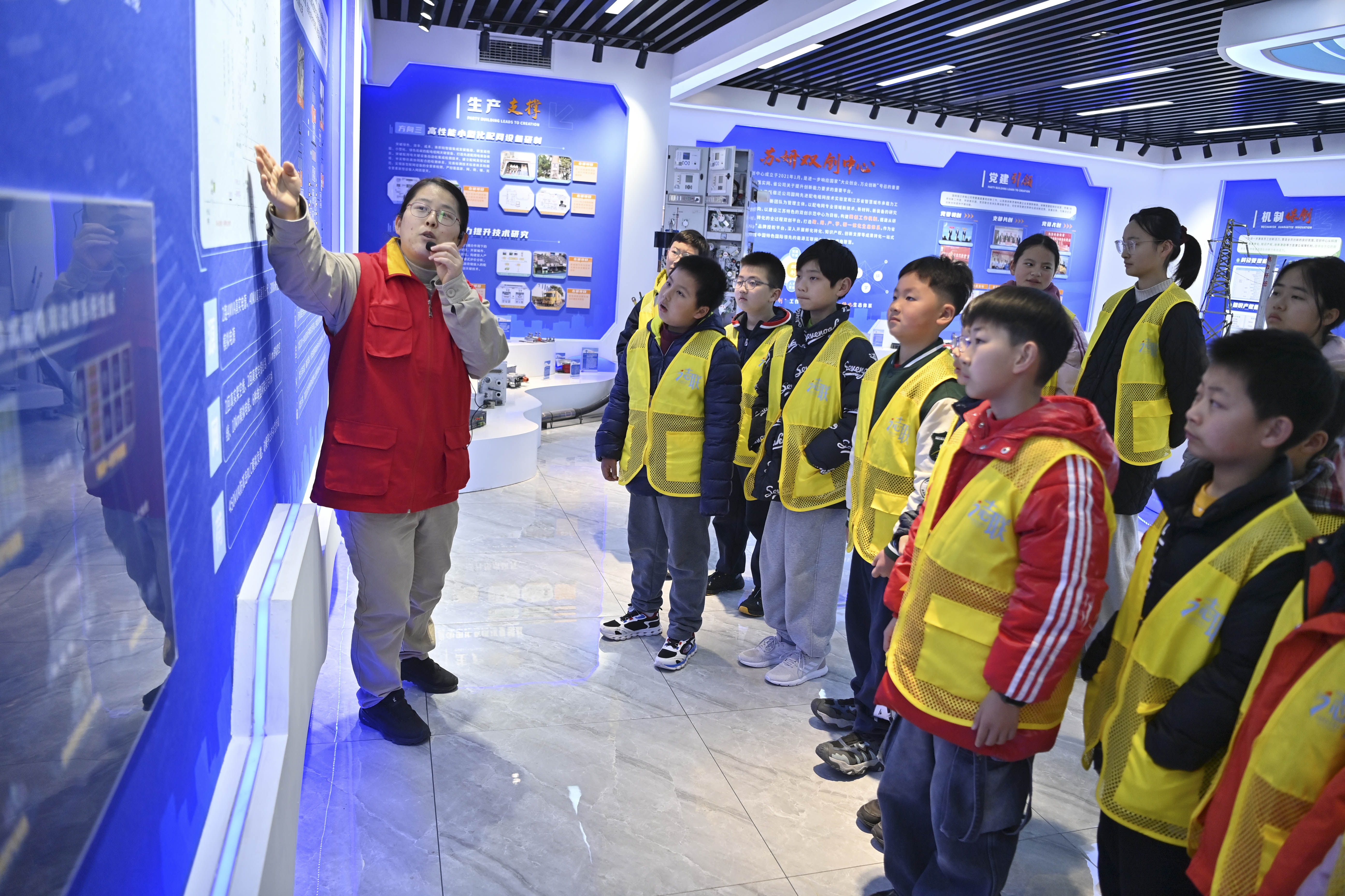 3月21日,省电机工程学会电力科普教育场所——国网宿迁供电公司智能配电网新技术研究与应用实验室接待了由宿迁市青创力社会实践中心组织的社会实践团队,来自宿城区双庄、古城、幸福、项里4个街道的近40名未成年人走进实验室,开启沉浸式电力探秘之旅,在实践中感受电力科技魅力,收获知识与成长。